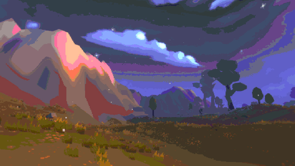 Screenshots of another scene I made in Unity3d, featuring "low poly" style and retro screen fx.