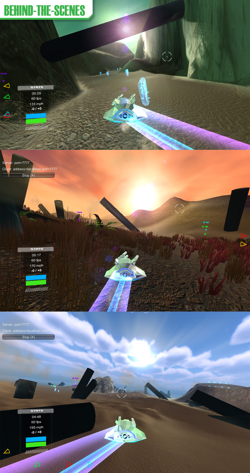 Different player vehicles have been added. I had to rework the custom network behaviors to allow for a "character select" variable. I also started working on the character select screen. | |