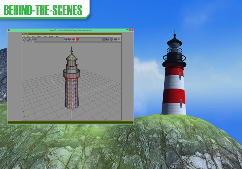 Today, I created a 3D lighthouse. Modeled in Wings 3D and textured in Photoshop. I also added a few other objects to the game for decoration - a boat, a hut, and a well - all found on the Unity asset store. |