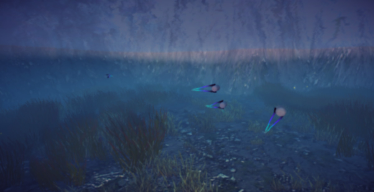 Added "terrain size" to the settings. Also, I tried two different ways to add objects to the water that behave like fish. It's been difficult, but I'm determined to figure it out because it will add more life to the scenes.