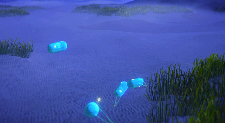 I added a script to the "boid" objects that makes their texture spin. I increased the size of the "monument" objects.