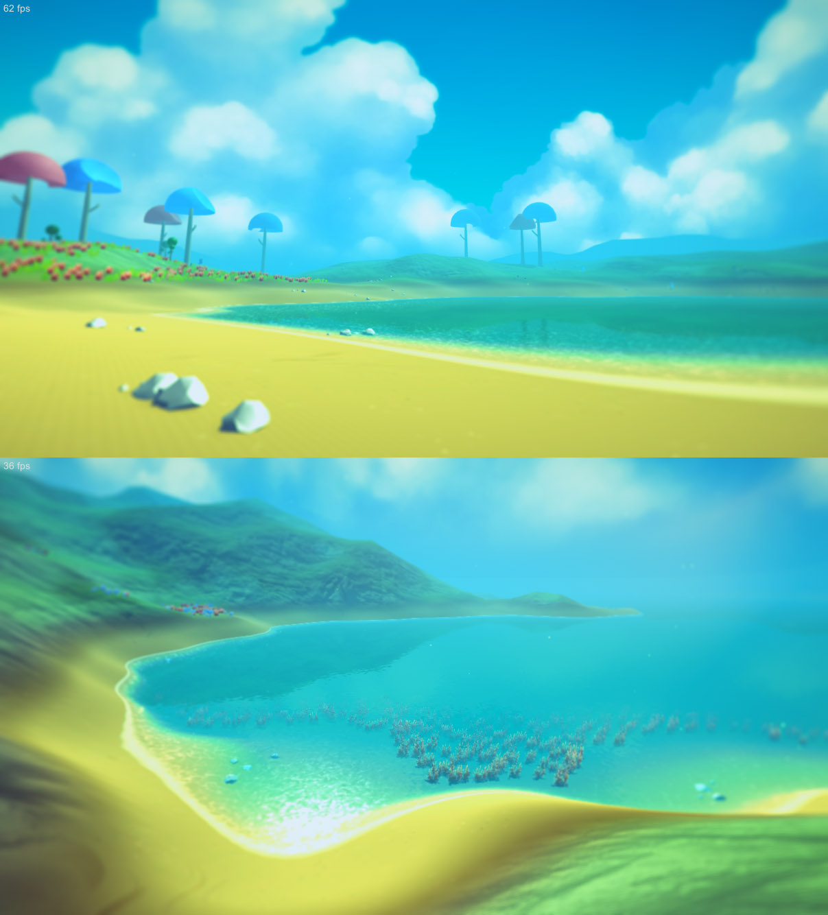 I updated the gem shader, water shader and caustics, added dust clouds, grass settings, etc!