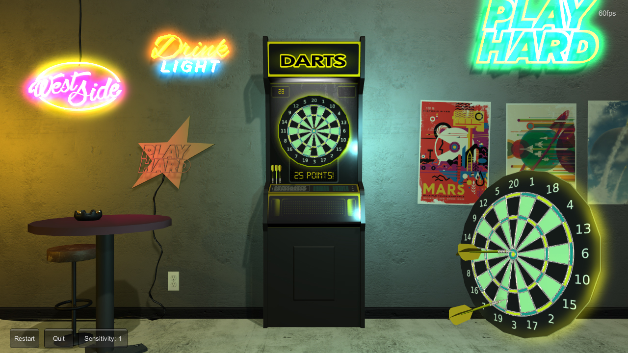 I updated the darts and cabinet artwork, and added more text. Created a splash screen and icon. Created a script for global settings and sensitivity. Various other improvements.