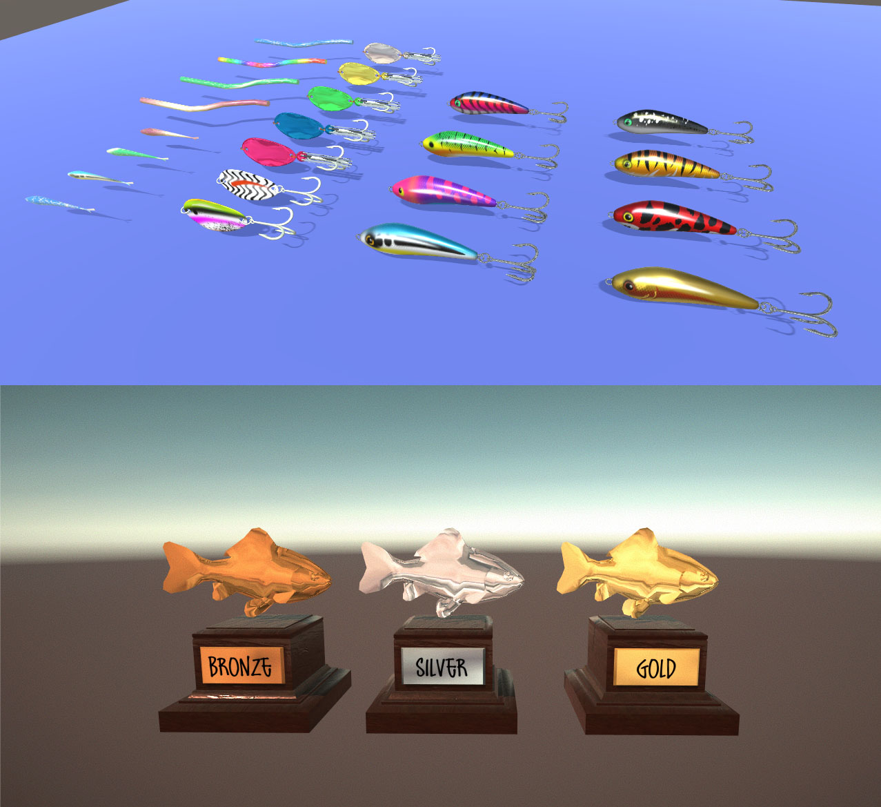 I made a worm-type that looks more fish-like, painted a couple spinners and jigs. I'm trying to finish these so I can continue working on the shop menu.