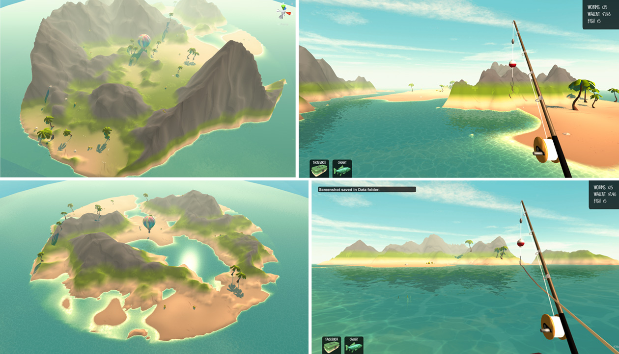 I adjusted the water settings so there's more refraction and bloom on the light from the sun. | |