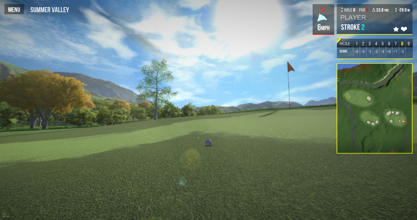 I worked more on the idea of having a golf cart (camera) travel in between holes, but I was having a really hard time getting it to transition in a nice way. It's just not as pleasing as I imagined. But I'll probably keep it in as an extra option, like a "course ride" with a simple UI element to rewind/fast-forward through the course.