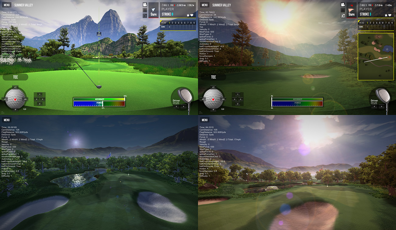 I had trouble matching the lighting with the original scene because it now uses the time-of-day script which alters the colors. I tweaked the script, while making sure it didn't adversely affect the lighting in the first course. Sometimes I'm impressed by how pretty it looks. I especially like the way things look in the evening/dusk time, when you can see the contours on the bump maps and pretty lens flares.